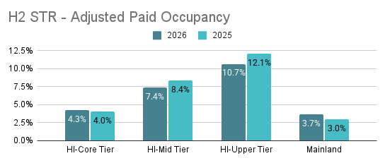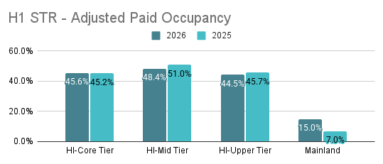 For the first half of the year, we expect continued moderation in demand compared to prior years. Occupancy and revenue trends are being influenced by both softer booking volumes and more competitive pricing environments. That said, even in a softer market, well positioned homes continue to capture demand when pricing, visibility, and flexibility are aligned. Mid-Tier properties are seeing the largest variance in Adjusted Paid Occupancy, while our Mainland Markets, which primarily cater to drive-to demographics are seeing the strongest performance for H1.