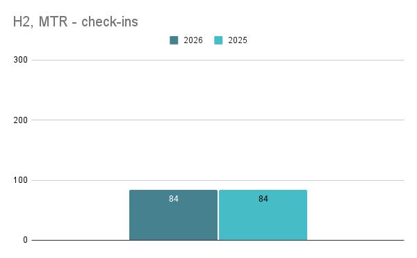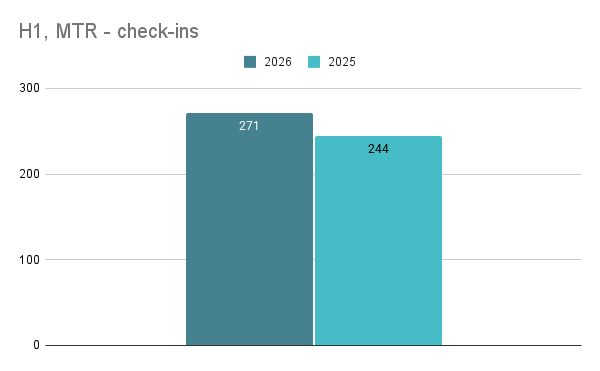 For the first half of the year, MTR check-ins are pacing ahead of last year: