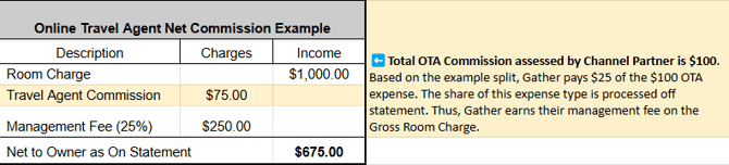 Below are examples of travel agent & online travel agent reservation breakdowns using a 25% management fee for simplicity: