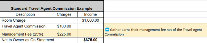 - Gather contributes $25 towards the Travel Agent Commission by assessing their management fees net of costs on statement